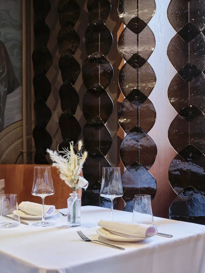 Еще одно интересное решение, которое мы хотим вам показать - стеклянные перегородки в технике фьюзинг. Фьюзинг - технология плавления стекла в муфельной печи на специальных формах, при которой стекло плавится, принимая необходимый вид. Эти перегородки разработаны на нашем производстве из тонированного в массе стекла, безусловно, являются исключительно декоративным решение.